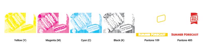 Where else should you choose Pantone? For larger areas, or if the colours need to stand out more. This is because CMYK is printed in a dot matrix and Pantone is more opaque.